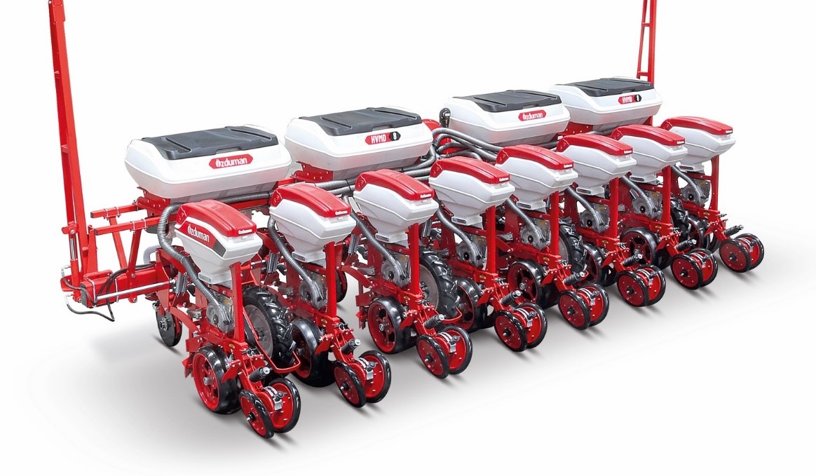 OZDUMAN – це навісна пневматична 8-ми рядкова сівалка точного висіву для висіву просапних культур таких як кукурудза, соняшник, соя та сорго з одночасним внесенням сухих мінеральних добрив за традиційною та мінімальною технологією обробки ґрунту.